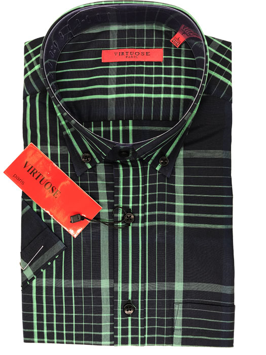 Chemise MC fond noir tissé Vert